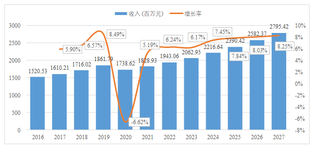 根据汇睿咨询的数据,2023年中国角度编码器收入约20.62亿元,预计2027年达到27.95亿元,并实现从2024至2027期间年复合增长率为7.89%的快速增长。我国制造业的升级换代以及科技的创新,加速了编码器市场的增长。从传统的工业应用到现代的机器人、新能源等高新技术领域,编码器的应用范围不断拓展,为市场的扩大提供了坚实的基础。