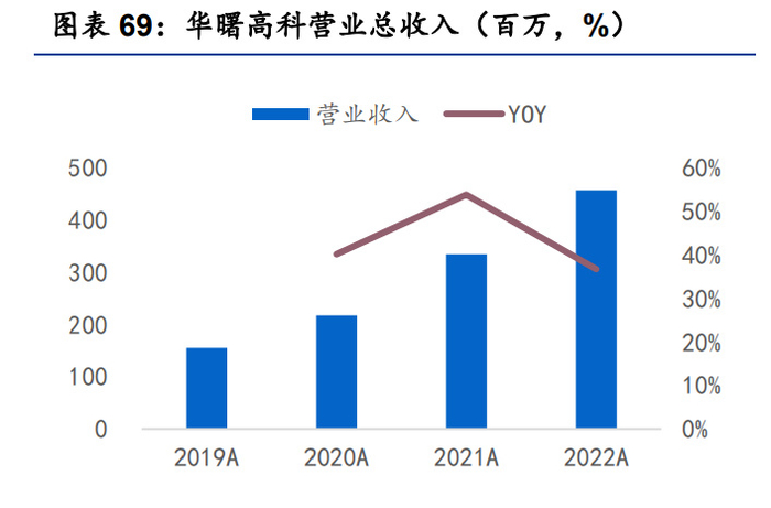 收入和利润快速稳步增长。2019 年到 2021 年营业总收入和归母净利润均保持 稳步增长,2020 年华曙高科实现营业收入 2.17 亿元,同比增长 40%,归母净利润 0.41 亿元,同比增长 128%。2021 年没有受到疫情的负面影响,公司业绩持续快速 增长,2021 年营收 3.34 亿元,同比 54%,净利润 1.17 亿元,同比 187%。22 年营 收稳固增长,净利润由于疫情影响期间费用大幅提升,出现下降的情况。