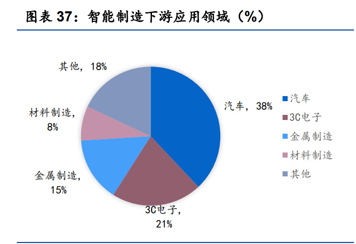 汽车与 3C 电子对自动化生产设备的需求量较高,渗透率也领先其他行业。金属 冶炼与材料制造行业的用工需求较大,且工作环境较为恶劣,并存在较高事故风险。 而工业机器人工作环境要求低,可在相对恶劣的工作环境下持续作业,引入工业机器 人可降低工作过程中的事故率。随着智能制造技术提升,智能制造设备成本下降后, 机器人将在该领域大范围推广,智能制造在重工业中的应用市场将存在较大上升空间。