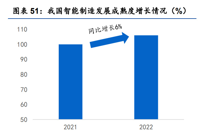 汽车、电子行业智能制造水平更高。中国制造业产业链中,3C 电子与汽车等下 游产业的市场化程度较高,消费者反馈及时,企业更注重分析消费者需求并升级产品, 导致产品迭代短,对生产效率求高。这种要求促进了制造技术进步,提高了智能制在 行中的应用率。相反,金属冶炼等上游行业的工艺技术更新速度较慢,导致智能制造 的渗透率在初期低于3C电子与汽车行业。总体而言,中国智能制造的渗透水平较低, 但存在提升空间。