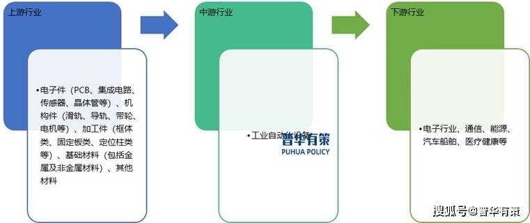 工业自动化设备制造业的上游行业产品主要是电子件(PCB、集成电路、传感器、晶体管等)、机构件(滑轨、导轨、带轮、电机等)、加工件(框体类、固定板类、定位柱类等)、基础材料(包括金属及非金属材料)和其他材料。从整体来看,上游行业市场较为成熟、产品供应相对稳定,本行业的原材料和零部件采购需求能够得到充分保障。工业自动化设备制造业的下游应用领域较广,包括电子行业、通信、能源、汽车、船舶和医疗健康等领域的自动化加工、检测、控制系统及相关仪器设备。上述领域需要的自动化设备产品种类繁多、规格各异,通常需要融合多学科技术,并具备丰富的硬件制程及软件设计能力。大部分企业仅能专注于一个或某几个领域的产品设计和生产,行业进入具有一定的进入壁垒。